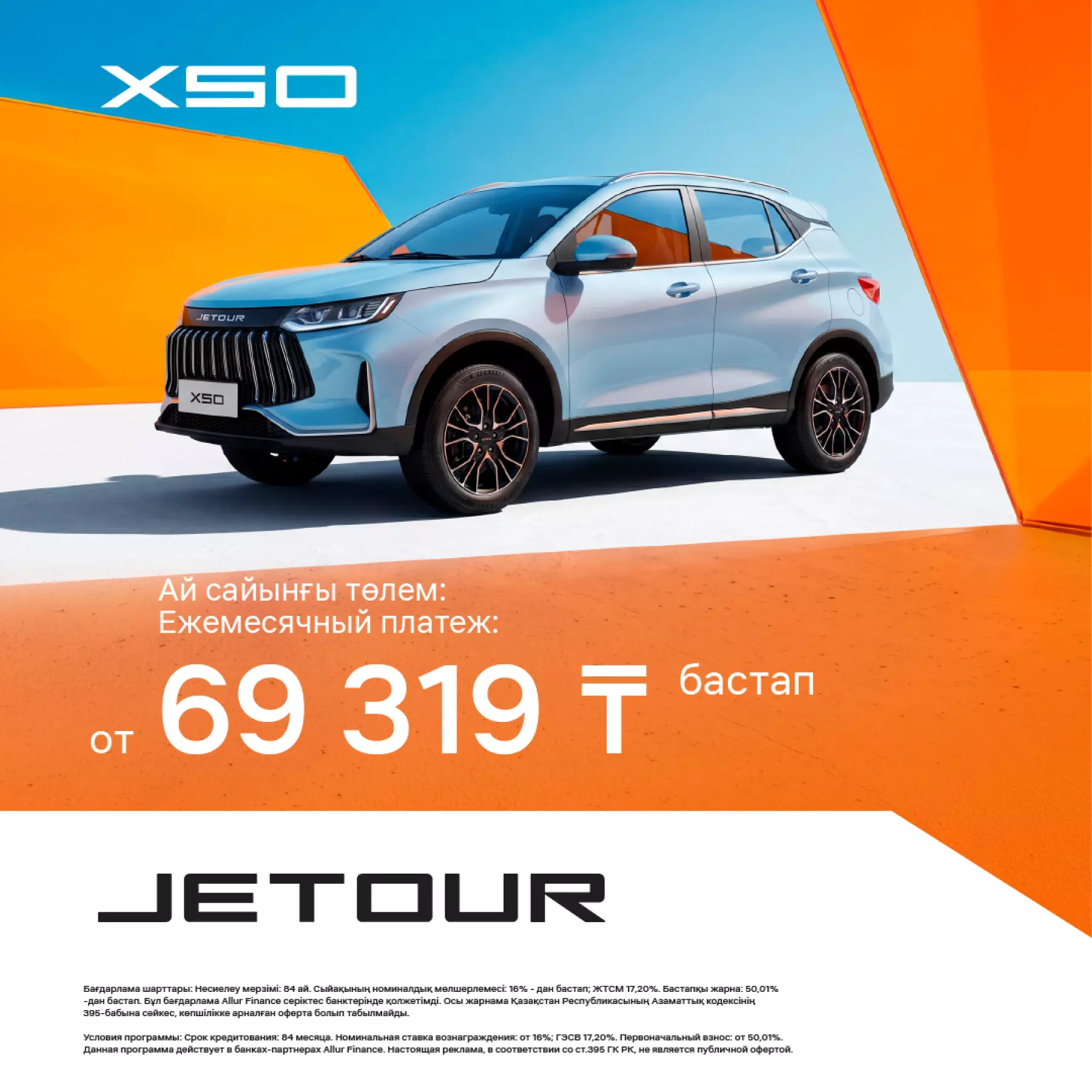 Jetour X50 ай сайынғы төлемі 69 319 теңгеден бастап!